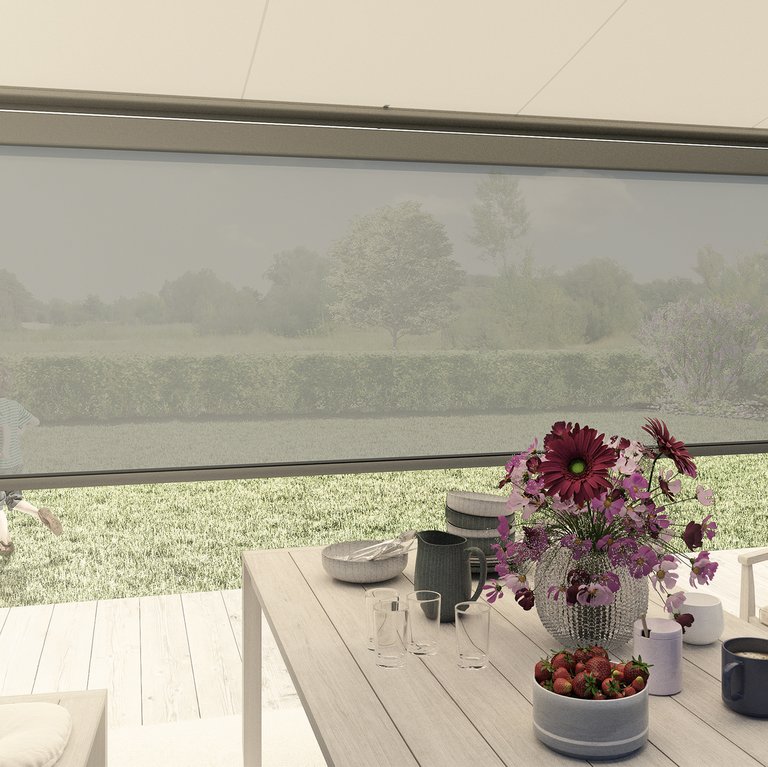 Of het nu gaat om een knikarmscherm, pergola of verticale zonwering: u kunt uw favoriete buitenruimte net zo open of afgeschermd maken als u zelf wilt. Zo creëert u een plek voor familie, vrienden en ontspannende momenten alleen, beschermd tegen de zon en nieuwsgierige blikken met de hele dag door aangename temperaturen.