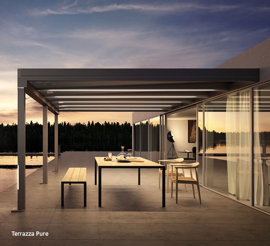 Creëer op uw terras een plek voor speciale momenten - om te ontspannen, samen te zijn en u prettig te voelen. Onder de glazen terrasdaken Terrazza Pure, Terrazza Sempra of Terrazza Originale geniet u van het rustgevende gevoel van bescherming en geborgenheid en ervaart u tegelijkertijd de vrijheid van het buiten zijn.