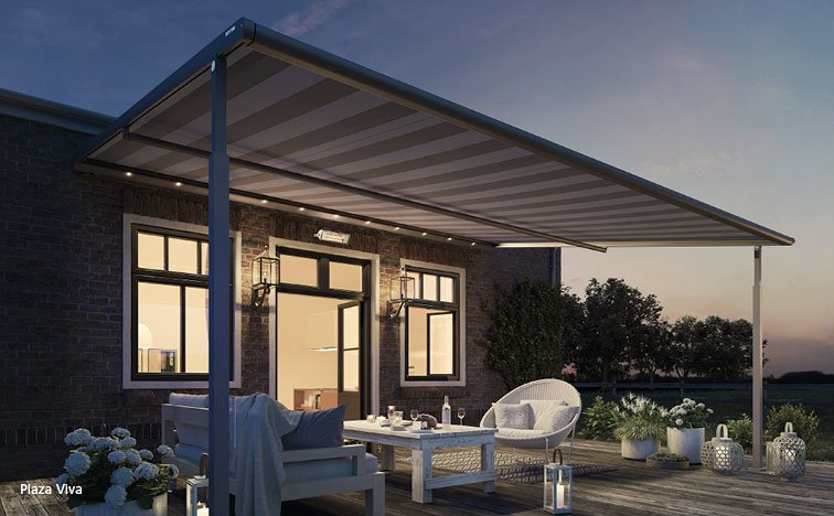 Nu 10% korting op terrasoverkapping of Plaza Viva met op afstand bestuurbare verlichting – voor een onbekommerde tijd in de buitenlucht, die niet eindigt bij het ondergaan van de zon.